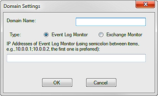 You can specify one or more domains for the Event Log Monitor or the Exchange Monitor to contact for user login information.