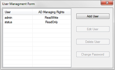 When you edit a user account, you can change only the access option. You cannot change the user name or password for the account. To change the user name, you must add a new user account and delete the old user account.
