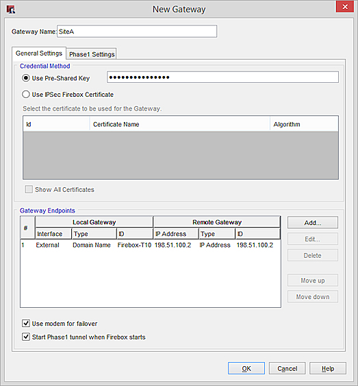 For more information about Phase 1 settings, see Configure IPSec VPN Phase 1 Settings.