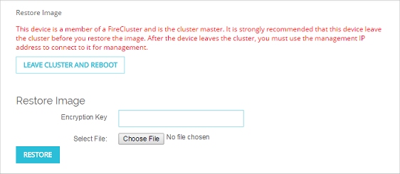 In the Web UI, the Firebox does not appear to be a cluster member. - Select System > Restore Image.
