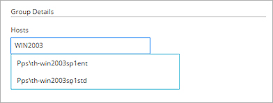 - In the Hosts text box, to search for a host name, type at least three characters from the host name.