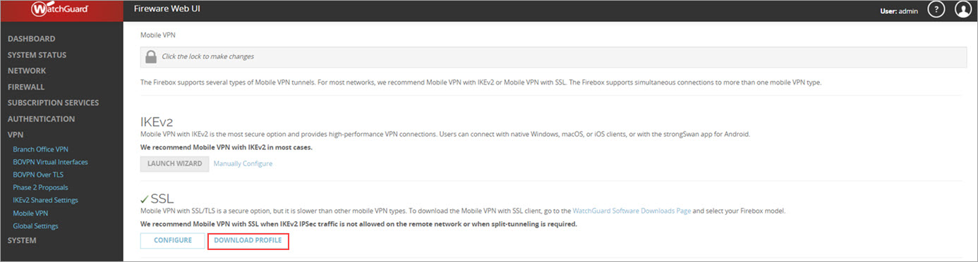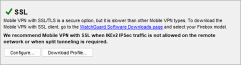 Before you download the Mobile VPN with SSL client profile, make sure your Firebox is configured to route VPN traffic. Make sure that Routed VPN traffic is selected in the Mobile VPN with SSL configuration. For more information, go to Manually Configure the Firebox for Mobile VPN with SSL.