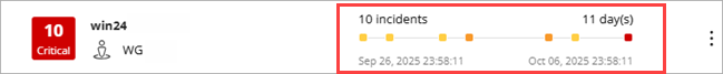 Color-coded squares on the timeline indicate days in the selected time range when incidents were detected. The color of the square corresponds to the risk level of the highest-risk incident from that day.