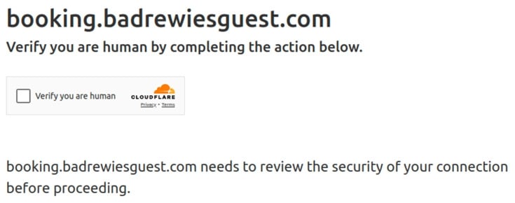 The link in the cancellation email sends the victim to a page hosted on booking[.]badrewiesguest[.]com, a domain registered the same day that the phishing emails first went out. The attacker uses CloudFlare’s bot protection services to prevent connections from automated tools and known virtual environments and mask the phishing page's actual hosting location.