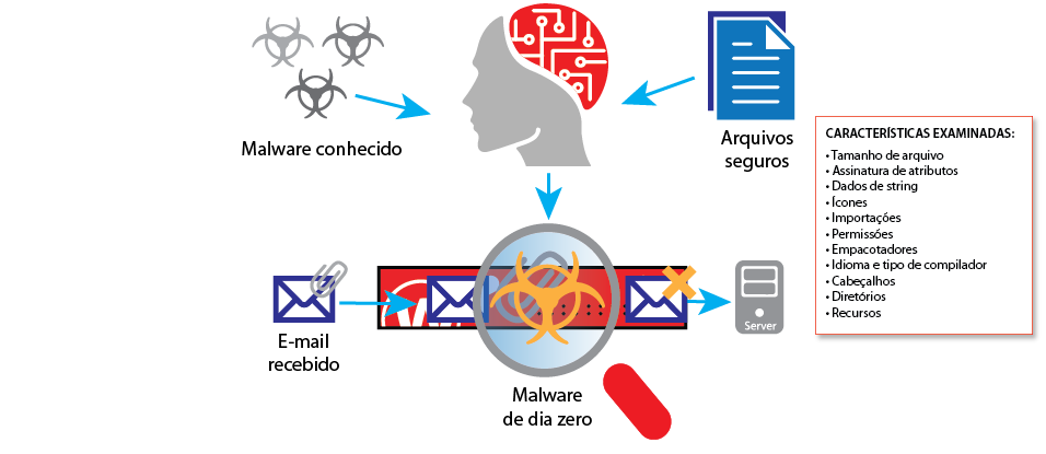 O IntelligentAV usa um mecanismo poderoso de aprendizado de máquina para proteger contra malwares em desenvolvimento e testes do setor mostram que ele apresenta uma vantagem preditiva de mais de dois anos. Ele identifica ameaças, pois analisa os componentes fundamentais de milhões de arquivos e examina diversas características em cada arquivo em busca de sinais de intenção maliciosa. O resultado disso são algoritmos estatísticos que classificam arquivos com base nas impressões estatísticas de arquivos mal-intencionados e benignos conhecidos. Esse processo automatizado determina se um arquivo é seguro antes de ser executado e fornece resultados em tempo real em frações de segundo.