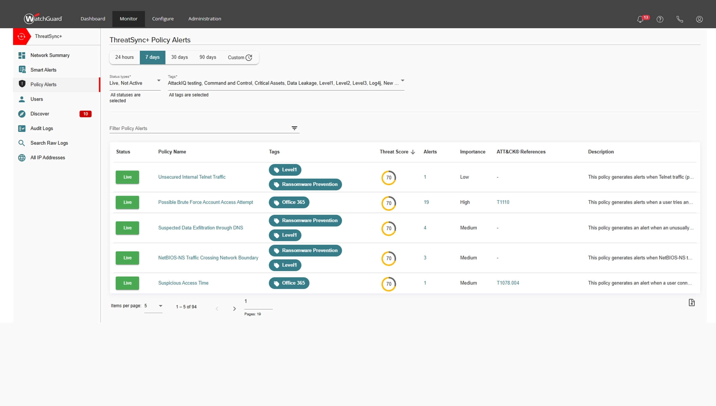 O ThreatSync NDR (Network Detection & Response) é executado na WatchGuard Cloud, integrando-se perfeitamente ao WatchGuard Firebox, firewalls de terceiros, roteadores e switches. A arquitetura nativa da nuvem reduz o tempo de implementação, a sobrecarga operacional e os custos, além de reduzir o tempo até a geração de valor.