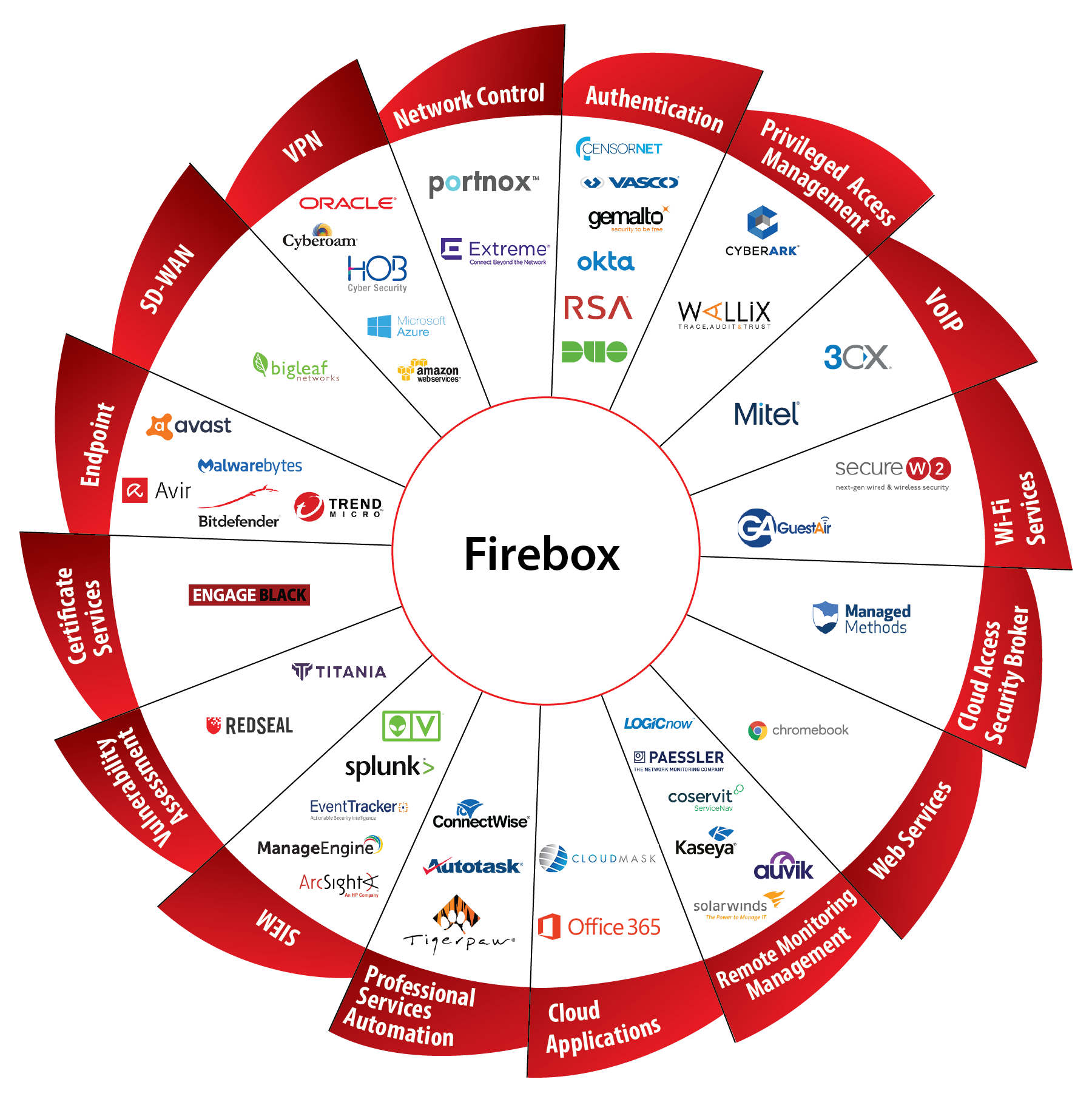 WatchGuard geht mit führenden Technologieunternehmen Partnerschaften ein und entwickelt zusammen mit ihnen Produktintegrationen, um die Bereitstellung der Geräte und Services Ihrer Kunden zu vereinfachen sowie deren Sicherheit zu stärken und ihre Verwaltung zu optimieren.