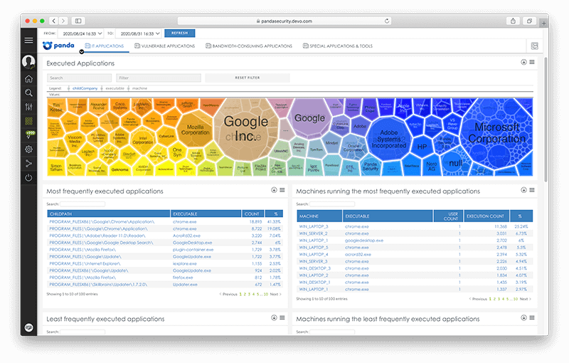 De los datos a acciones de TI e información de seguridadLa herramienta de generación de informes avanzada almacena y correlaciona la información de los endpoints sobre los procesos ejecutados y otra información contextual. Los información se presentan de manera que se puedan sacar conclusiones informadas sobre la TI y la inteligencia de seguridad de las empresas.