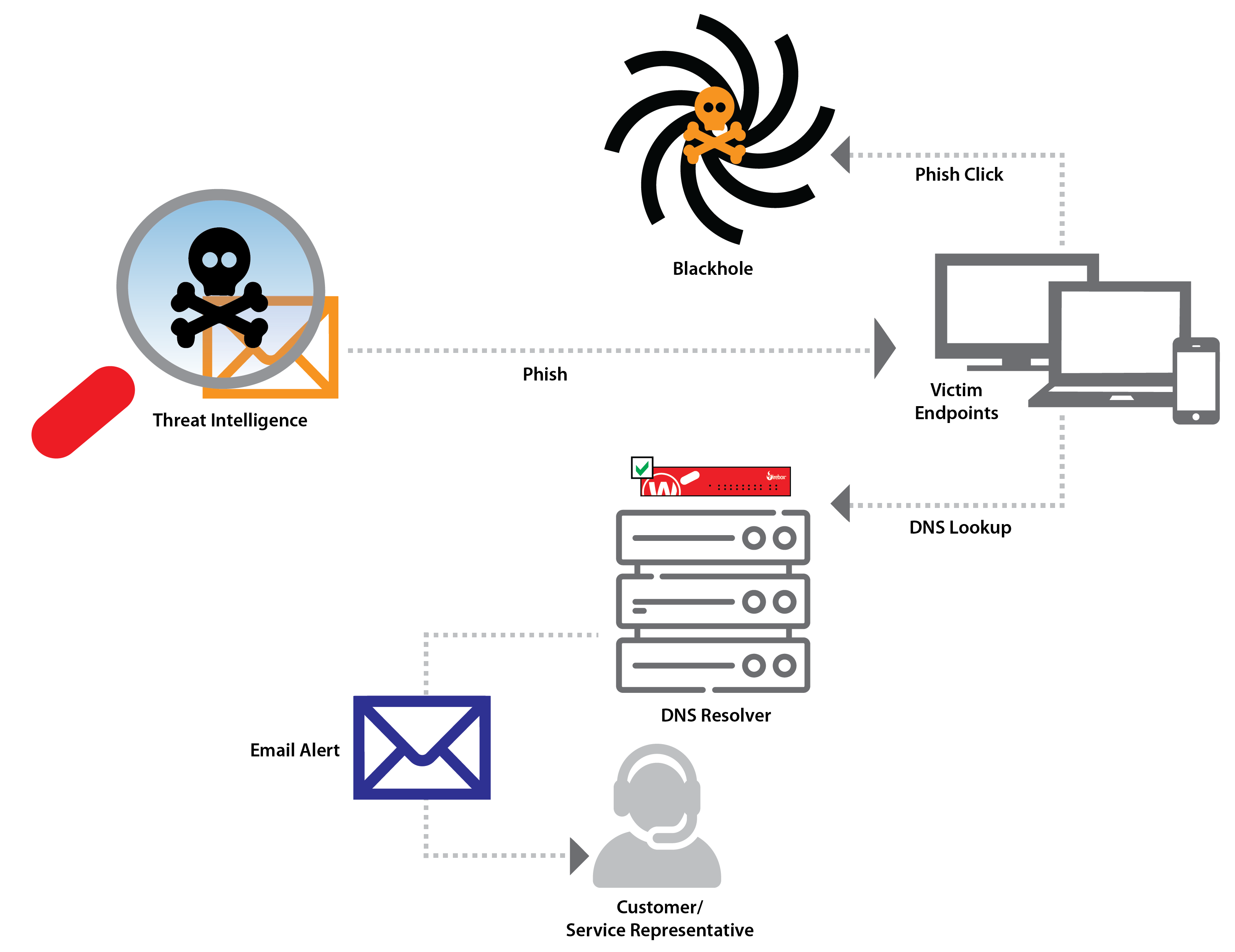 Cuando los agresores atacan, quedan atrapados en el agujero negro de DNSWatch, para que podamos analizarlos. Luego se hace un seguimiento mediante un informe que incluye detalles sobre infecciones detectadas y bloqueadas por el servicio. No necesita pasar horas analizando registros ni investigando una alerta a medida que surge, recibe el análisis directamente en su bandeja de entrada de un servicio único y específico del cliente que no se encuentra en otras soluciones de filtrado de DNS. Este servicio permite que las empresas reaccionen rápida y fácilmente para abordar cualquier riesgo potencial, logrando lo que otros solo pueden lograr con un ejército de analistas de seguridad.