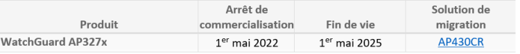 WatchGuard annonce l’arrêt de la commercialisation du point d’accès WatchGuard Wi-Fi AP327x géré dans Wi-Fi Cloud.