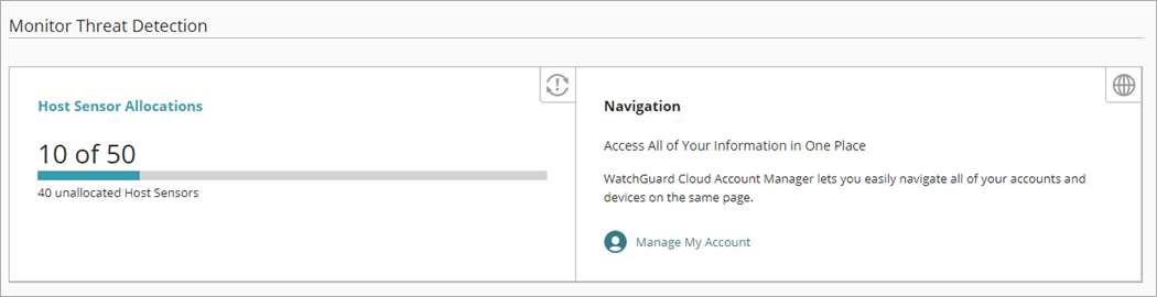 アカウント マネージャー から 概要 を選択すると、Threat Detection を監視する ページには Host Sensor の割り当てが表示されます。