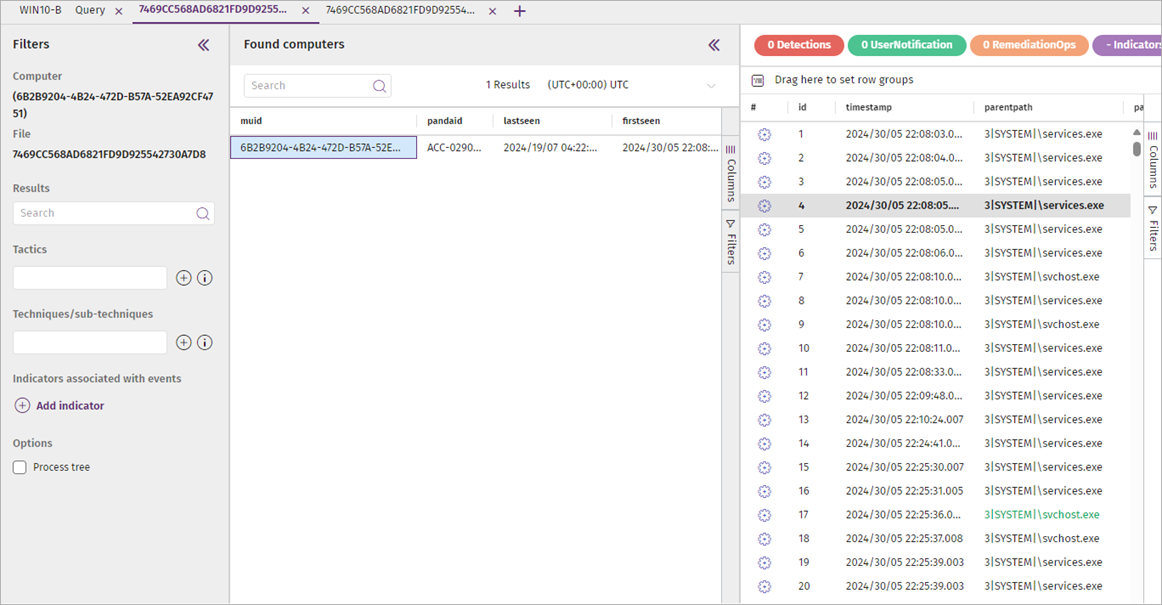 Mit dem Tool für die erweiterte SQL-Abfrage können Sie spezifische Ereignisse für einen ausgewählten Computer oder einen anderen Computer in Ihrem Netzwerk finden. Sie können das Tool Erweiterte SQL-Abfrage nutzen, um die in den letzten sieben Tagen erfasste Telemetrie zu überprüfen.