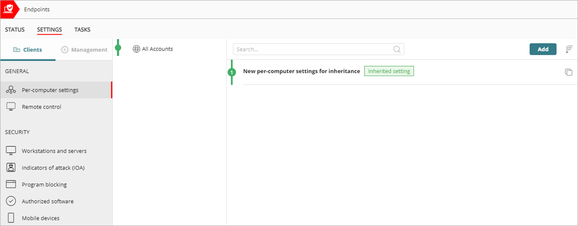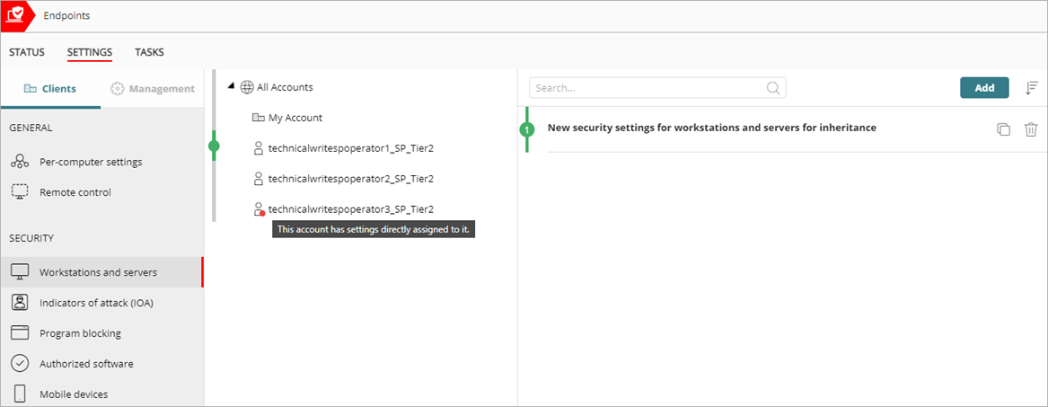 In der mehrmandantenfähigen Verwaltungsoberfläche für Endpoint Security können Tier-1-Service-Provider Einstellungsprofile erstellen und den von ihnen verwalteten Service-Provider-Konten zuweisen. Dieses Thema beschreibt die Einstellungsvererbung, wenn ein Service-Provider einem verwalteten Service-Provider-Konto Einstellungen zuweist.