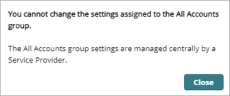 - Ziehen Sie ein Einstellungsprofil zu Alle Konten oder zu einem Service-Provider-Konto. Wenn der Gruppe Alle Konten des Kontos bereits Einstellungen zugewiesen sind, dann wird neben dem Kontonamen ein roter Punkt angezeigt.