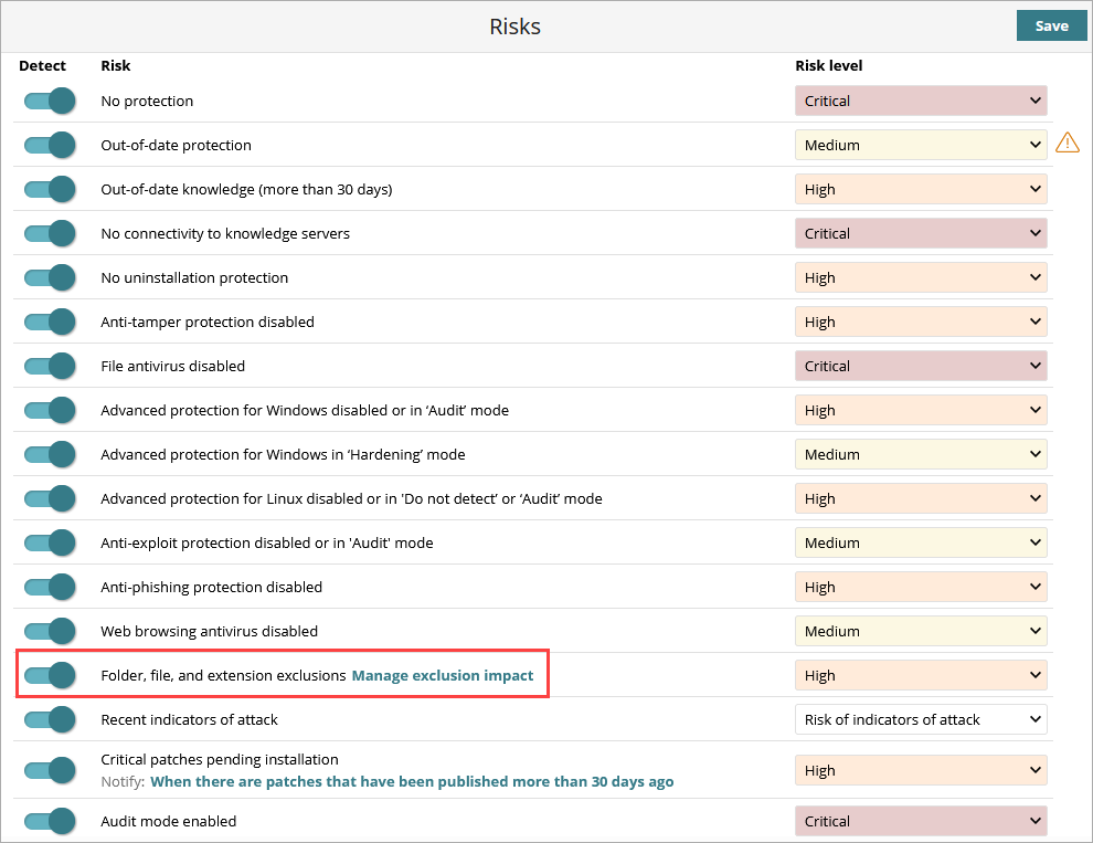 Risikoeinstellungen für Ausschlüsse konfigurieren