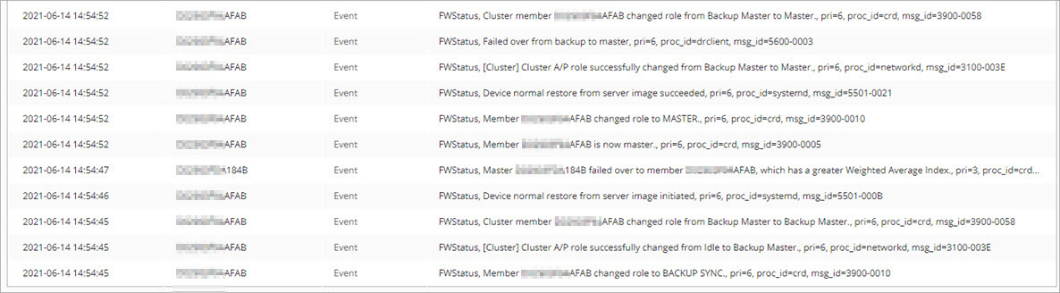 - Vollständige Statussynchronisierung von Master [Seriennummer] zu Backup-Master [Seriennummer] erfolgreich abgeschlossen