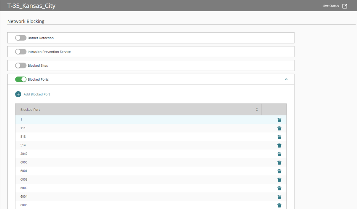 Die Seite Netzwerk-Blockierung wird geöffnet. - Aktivieren Sie Blockierte Ports.