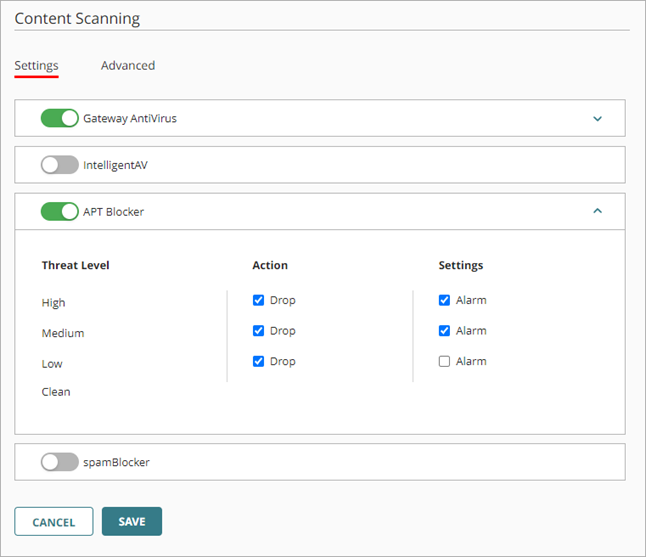 Um APT Blocker zu aktivieren, müssen Sie zunächst Gateway AntiVirus aktivieren.