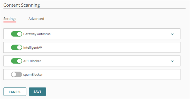 Bei Cloud-verwalteten Fireboxen können Sie das Inhaltsscanning mit diesen Security Services konfigurieren: