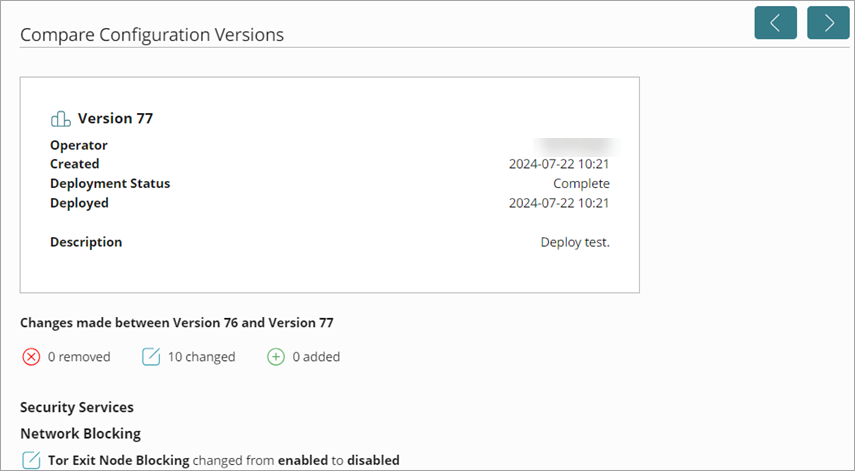 - Klicken Sie in der oberen rechten Ecke auf die Pfeile, um aufeinanderfolgende Konfigurationsversionen anzuzeigen.
