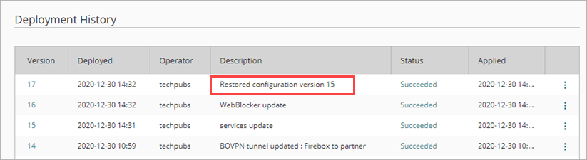 So kehren Sie über WatchGuard Cloud zu einer zuvor bereitgestellten Konfiguration zurück: