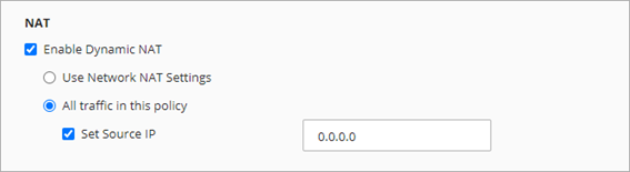 Diese Option ist standardmäßig aktiviert. - Wählen Sie aus, wie dynamisches NAT für den von dieser Regel behandelten Datenverkehr angewendet werden soll: