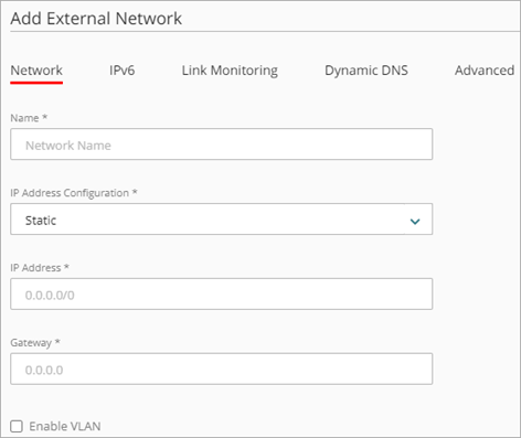 1. Fügen Sie ein externes Netzwerk hinzu oder bearbeiten Sie es wie beschrieben unter Externe Netzwerke bearbeiten oder hinzufügen.