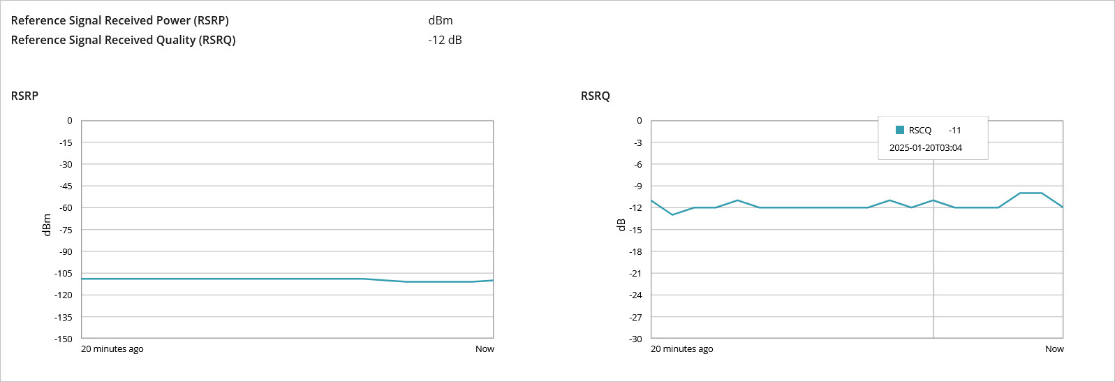 Gibt das Verhältnis der empfangenen Signalleistung (RSRP) zu allen Pegeln von Signalen auf derselben Frequenz in Dezibel (dB) an. Ein höherer RSRQ-Wert weist auf einen besseren Signal-Rausch-Abstand hin.
