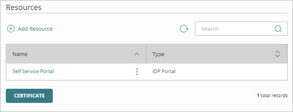 Die IdP-Portal-Ressource ist auf der Seite Ressourcen aufgeführt.