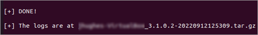 Am Ende erstellt der Prozess eine tar.gz-Datei mit den Protokollen zur Fehlersuche und -behebung. Um den Supportfall zu unterstützen, wenden Sie sich an den Support und senden Sie die tar.gz Datei.