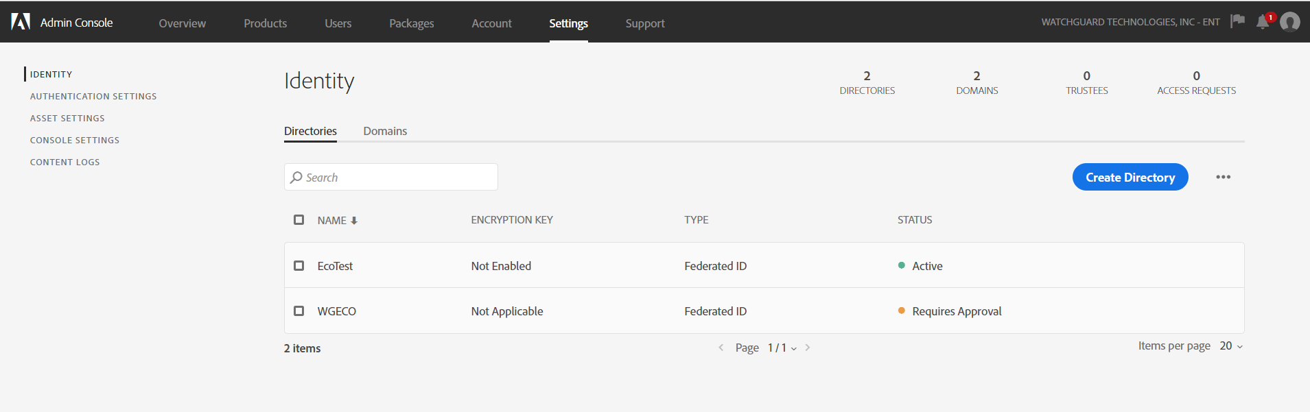 - Click Create Directory. Before you continue, Adobe must provision your directory. This can take up to 48 hours.