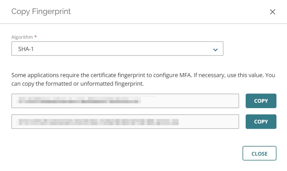 and select Copy Fingerprint. - From Algorithmdrop down list, select SHA-1.
