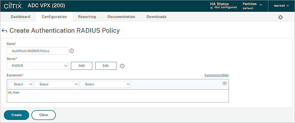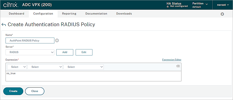 - Select Citrix Gateway > Policies > Authentication > RADIUS.