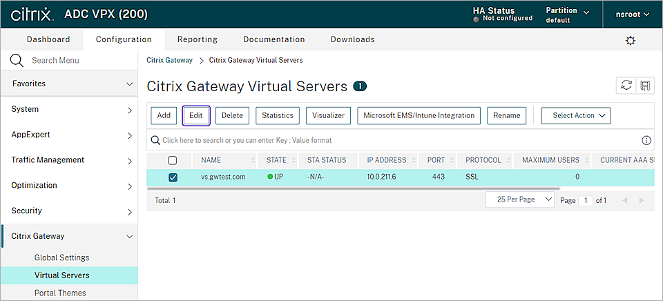- Select your virtual servers. For detailed steps to create virtual servers, see the Citrix documentation.