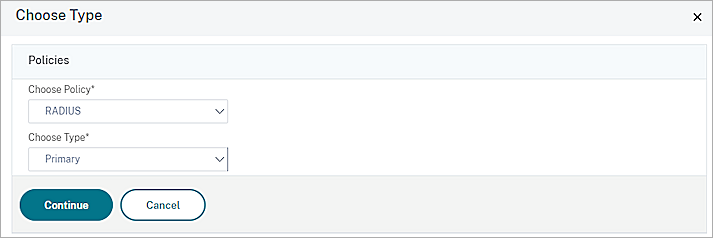 - From the Choose Type drop-down list, select Primary. Click Continue.