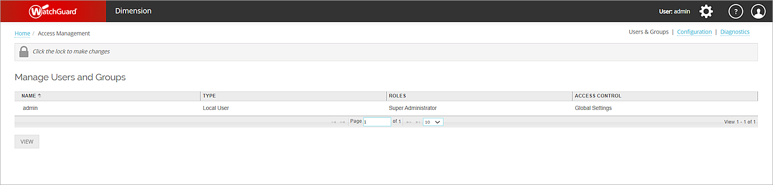 The Manage Users and Groups page opens. - To unlock the configuration, click