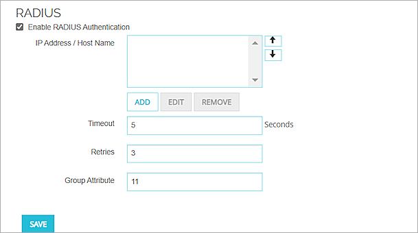 - In the IP Address / Host Name text box, click Add to add a RADIUS server.
