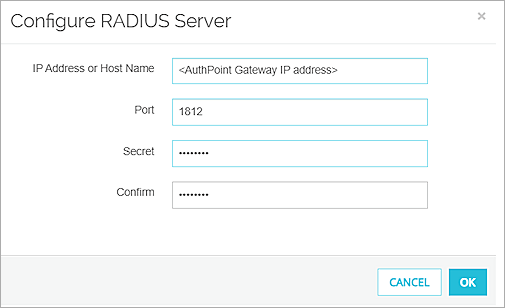 - In the Secret and Confirm text boxes, type a shared secret key. This key is used to communicate with the RADIUS server (AuthPoint Gateway).