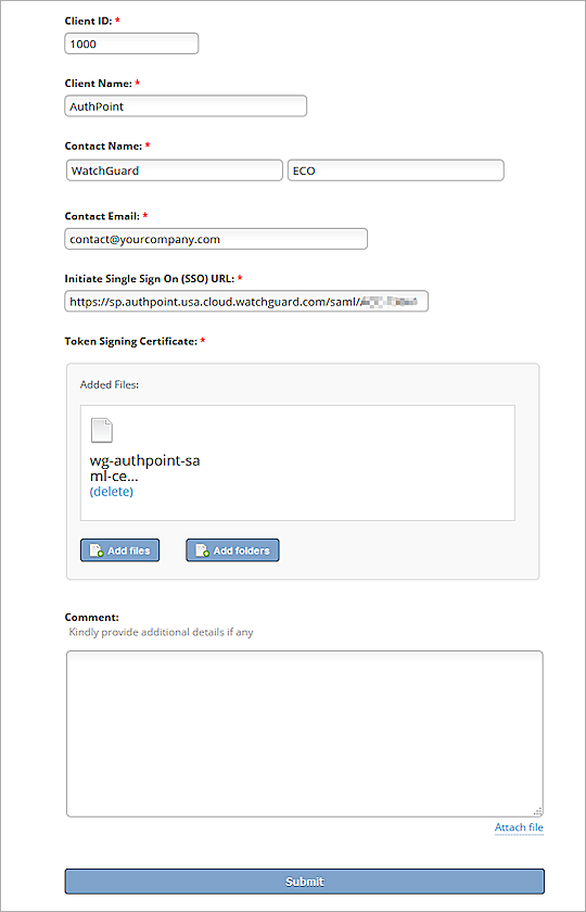 - In the Client Name text box, type a name. In our example, we type AuthPoint.