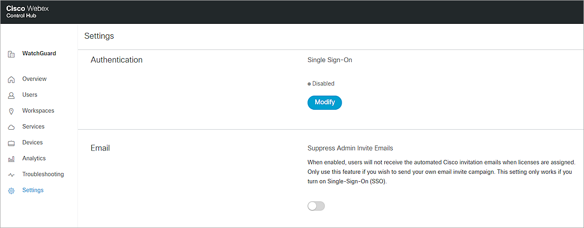 Cisco WebEx can be configured to support MFA in several modes. For this integration, we set up SAML with AuthPoint.