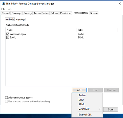 This integration was tested with Cybele Thinfinity Remote Desktop Server v4.0.28.0.