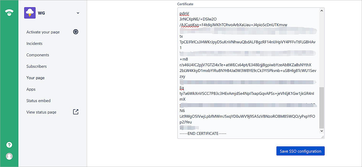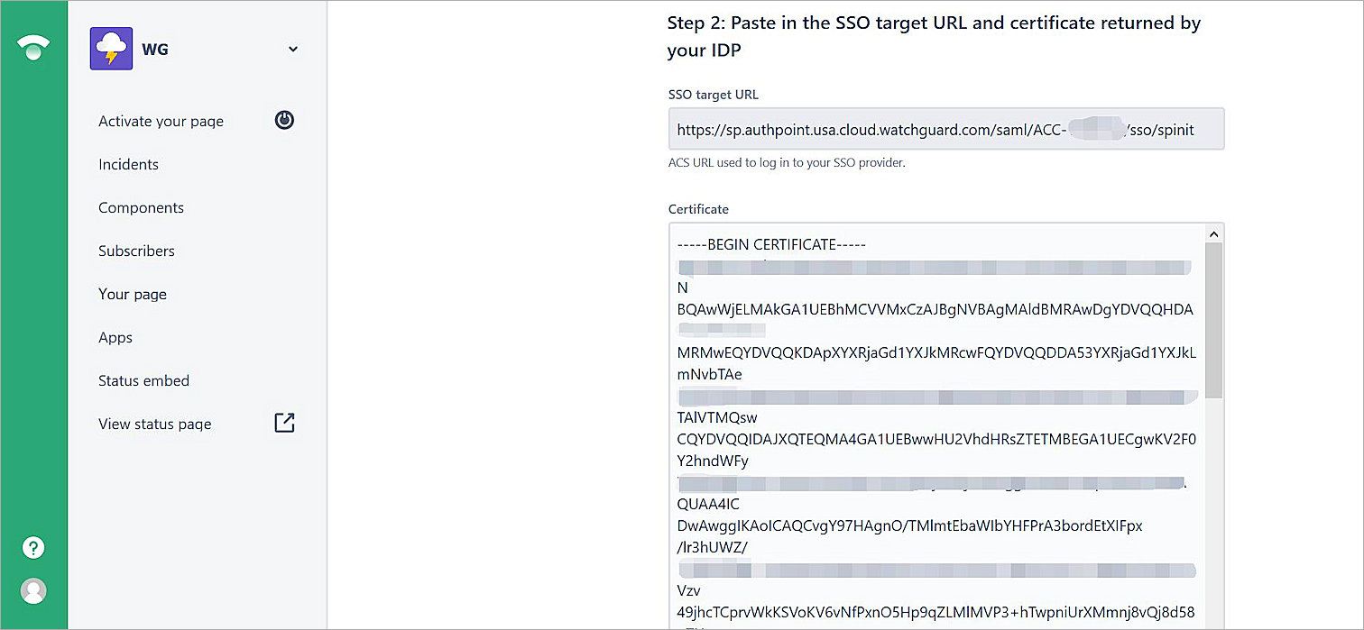 To start, you must download the metadata file from the Certificate Management page in the AuthPoint management UI. After you have those files, you can configure Statuspage.