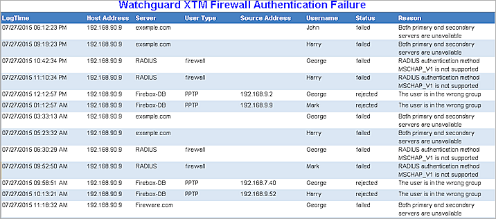 | Jun 19 09:17:14 192.168.90.9 Jun 19 09:18:19 CADM-XTM-520 (2015-06-19T13:18:19) accounting-management [2021]: Management user admin from 10.0.1.2 log in attempt was rejected. |