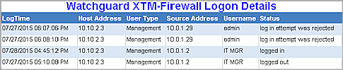 - Double-click the specified WatchGuard XTM category to view the log data.