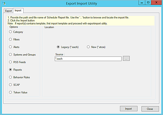 - Import categories, alerts, and reports, as well as token templates and knowledge objects as described in the next section.