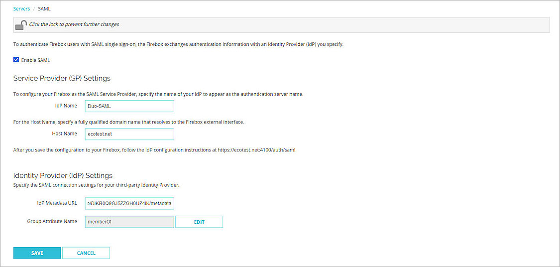For SAML Response Attribute, memberOf is the default Group Attribute Name in the IdP settings when you enable SAML on the Firebox. You can edit it as you want.