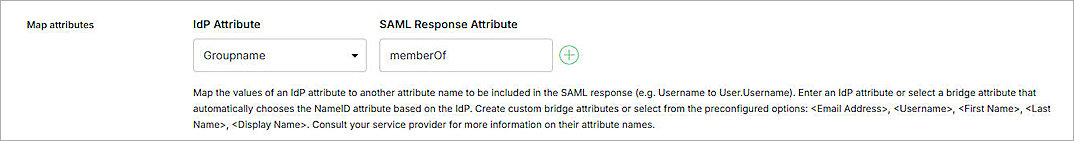 - In the Attribute Name text box, type the attribute name you created in the Configure the Authentication Portal as a Service Provider in Duo section. In this example, we type Groupname.