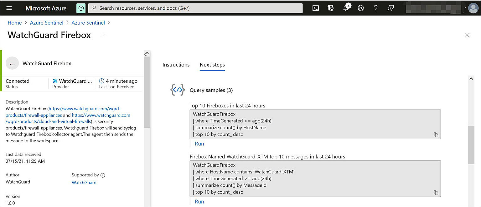 This document describes the integration of Microsoft Sentinel with your WatchGuard Firebox.