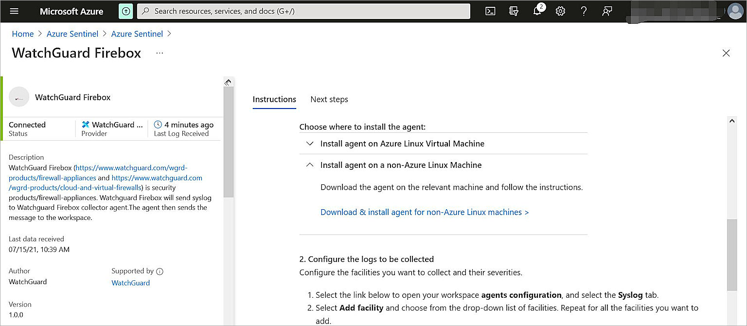 To configure Microsoft Sentinel with your Firebox, complete these steps: