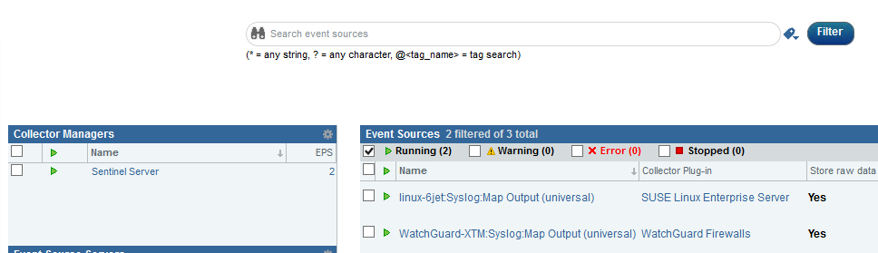 - Click Next to complete the plug-in import. The WatchGuard Firewalls plug-in is listed in the Collectors tab and in Event Source Palette.
